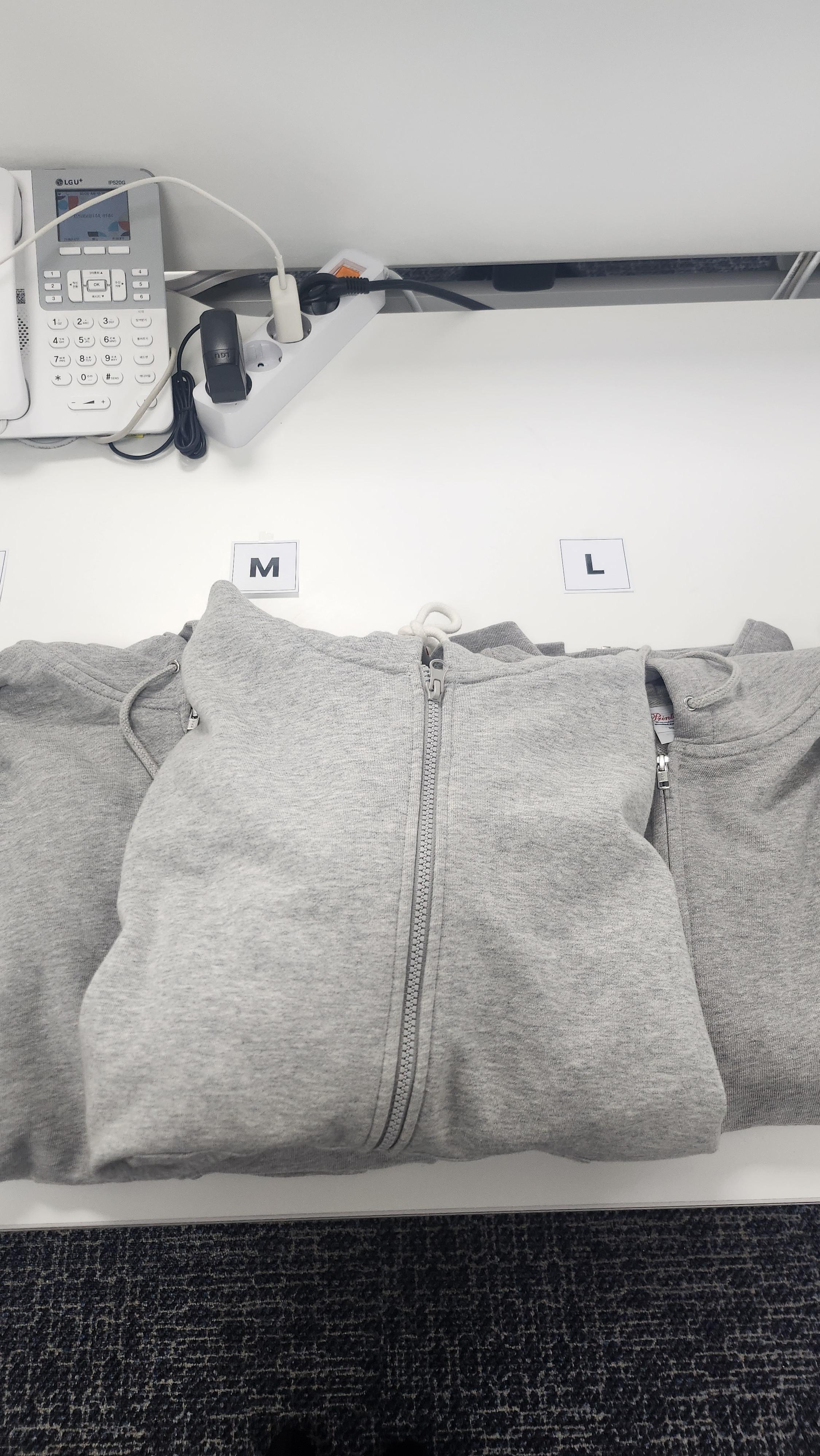 두번째 사진에서 위에 겹쳐둔 것이 제가 가지고 있던 SPA 브랜드의 후드집업이고, 아래가 저희가 샘플로 받아본 상품입니다. 물론, 누군가는 너무 예민하고 너무 민감하다고 생각할 수 있지만 '몇 천원 차이에 품질 차이가 그렇게 크게 날까?' 생각했던 것이 저희만의 경기도 오산이었음을 깨닫게 되는 순간이었답니다. 그래서, 대표님께 제가 가지고 있던 SPA 브랜드의 후드 집업을 입어보시라고 드리면서 "지금 당장 매장에 가서 다시 한번 리서치를 해보겠다"고 말씀드렸습니다.