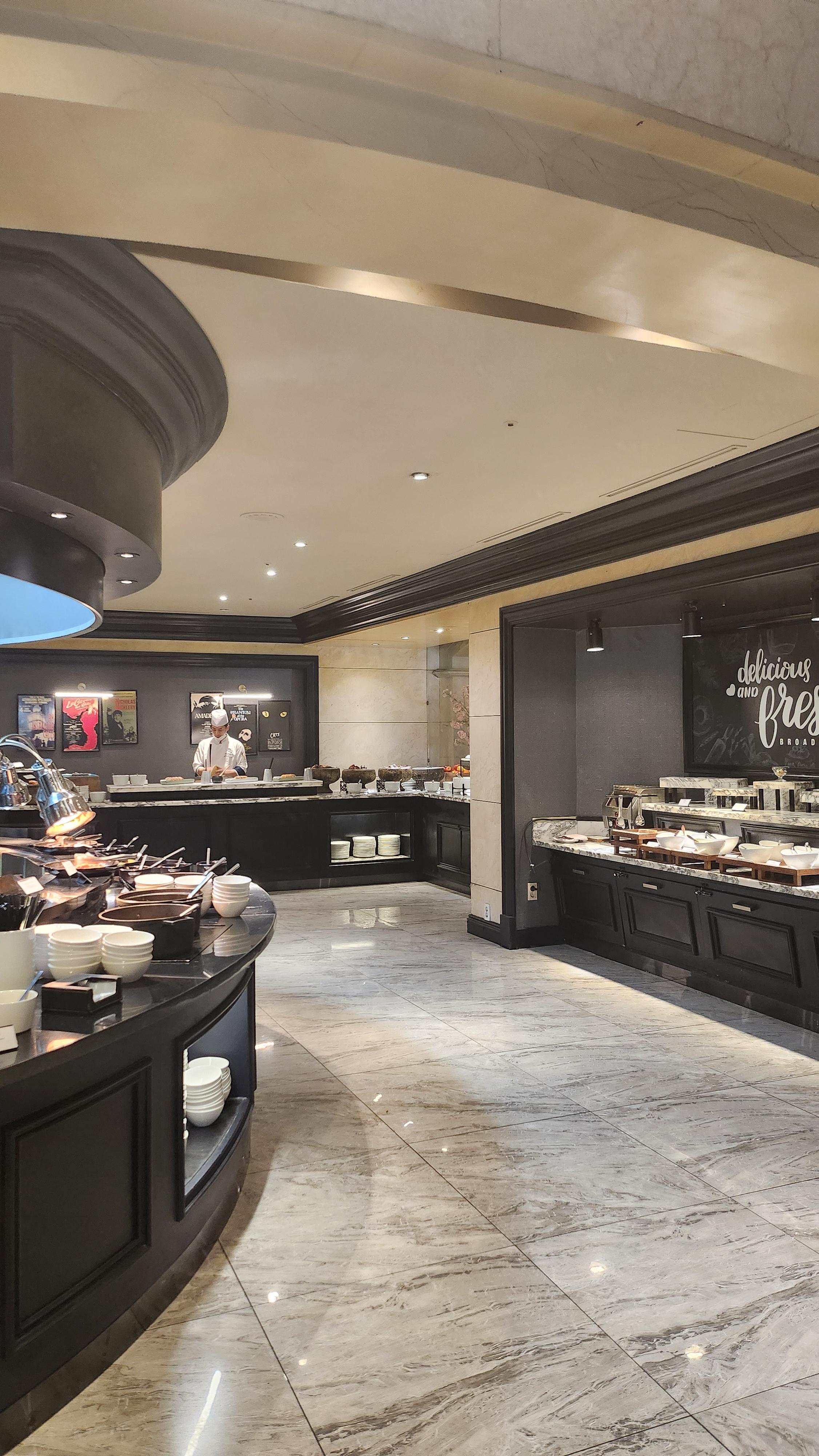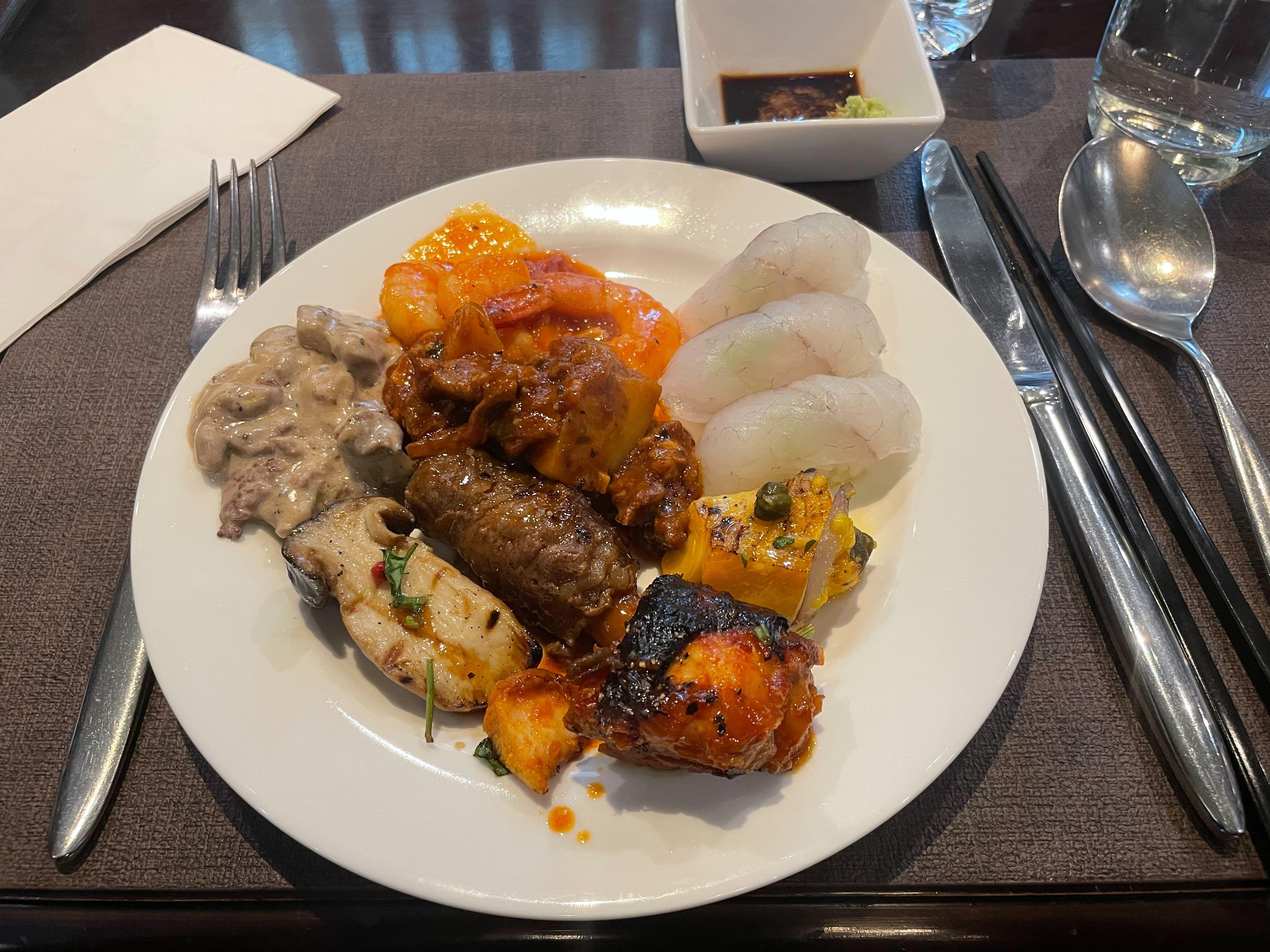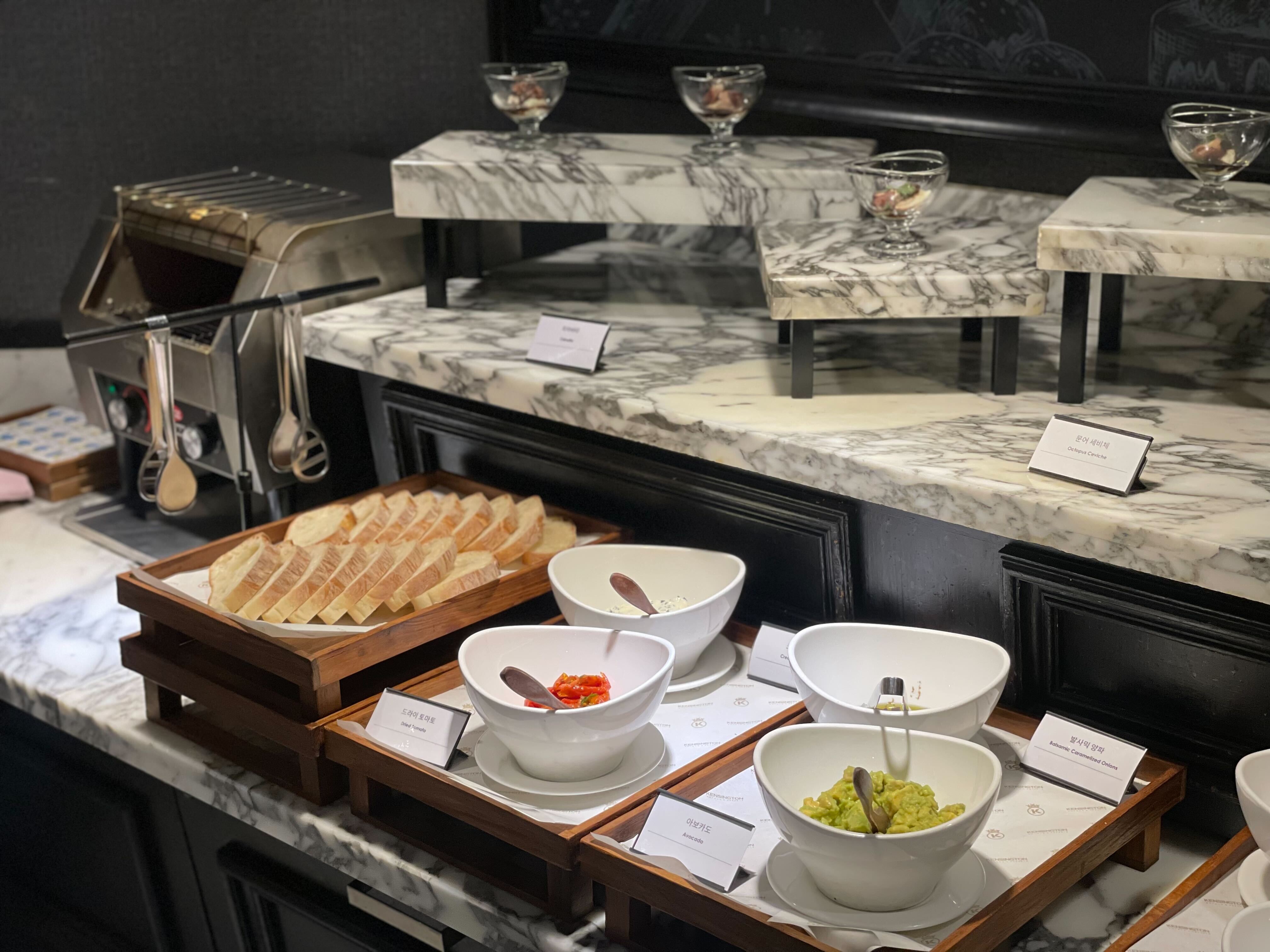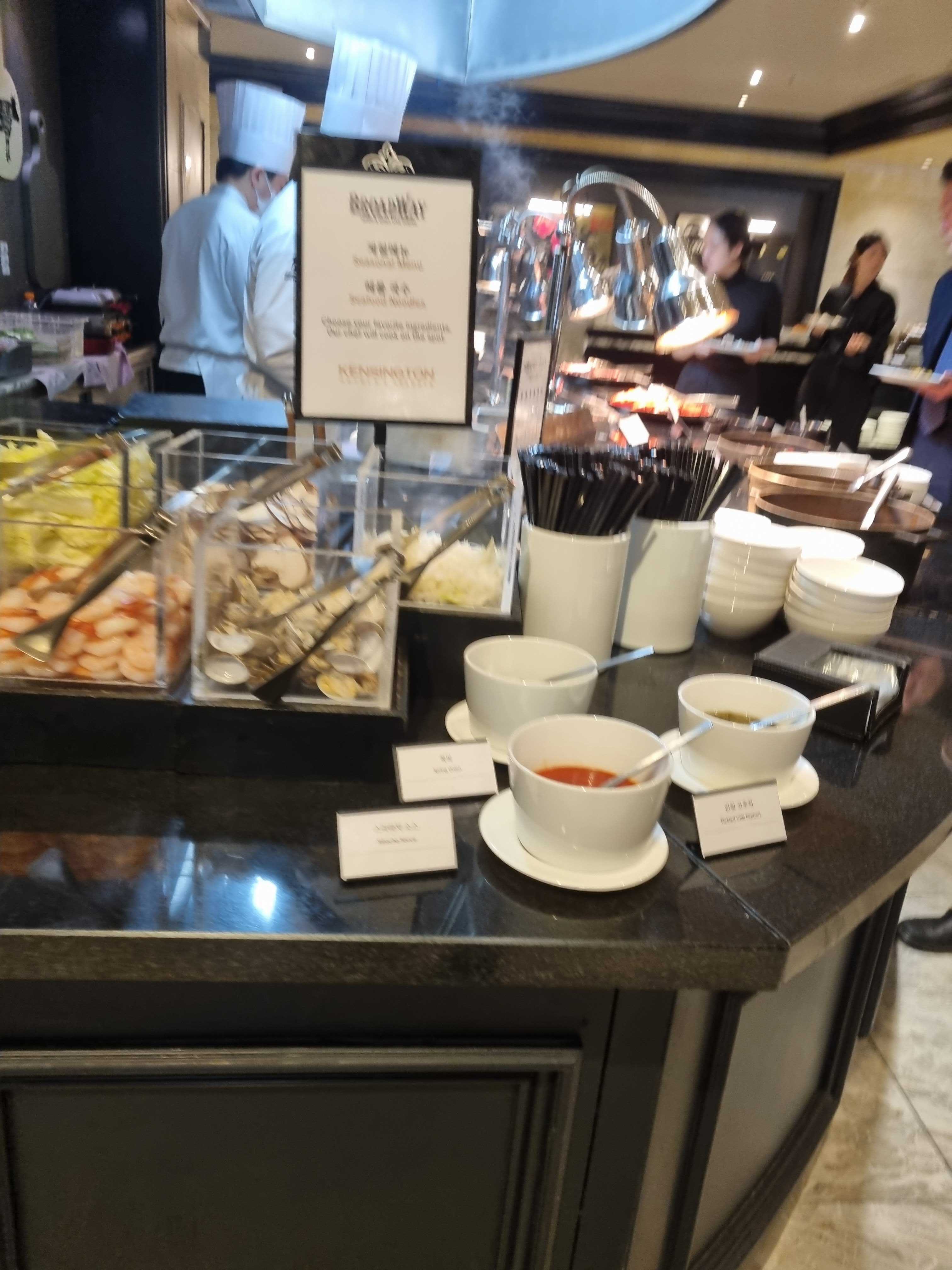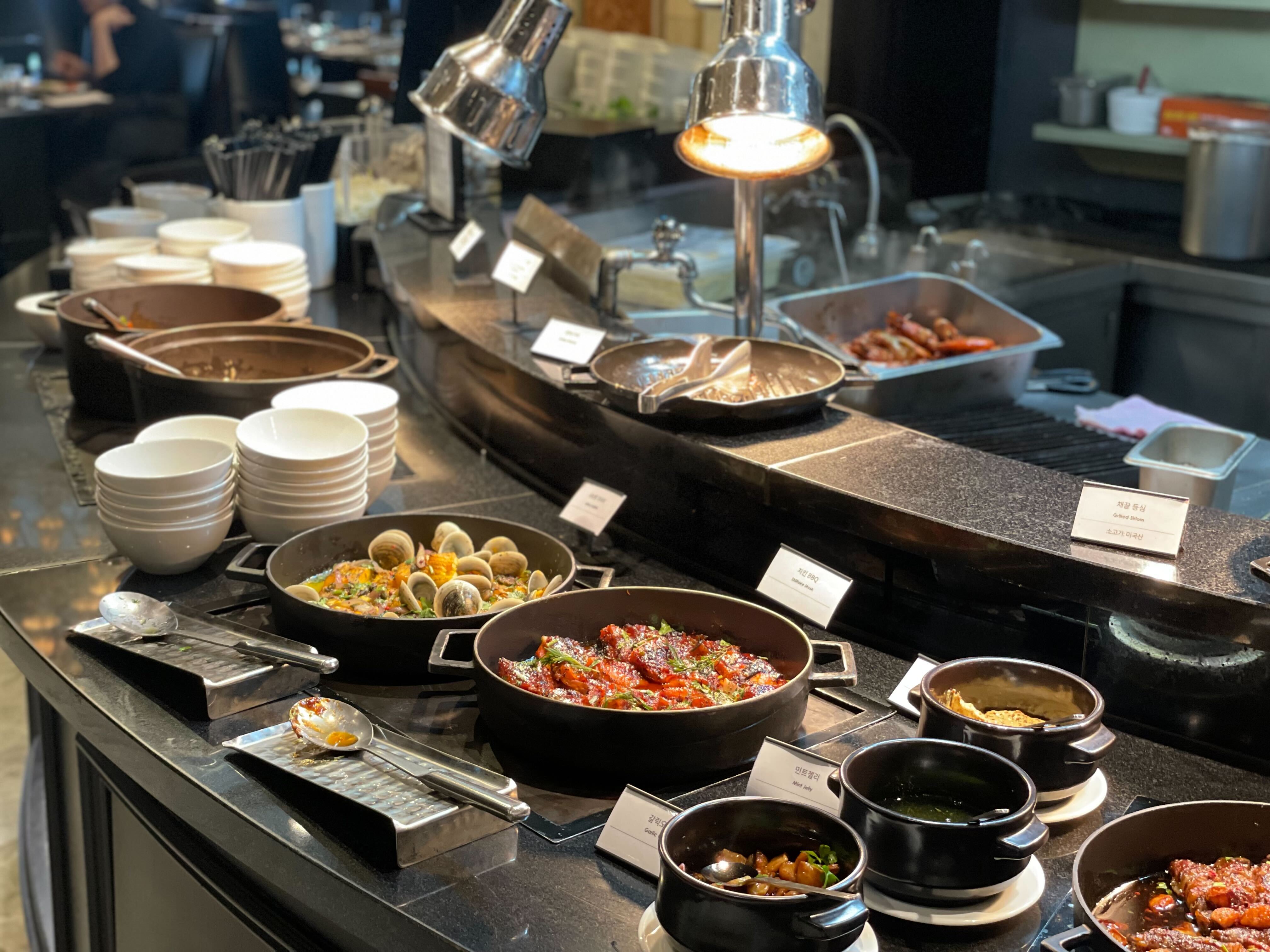 코너는 기대보다 작고 동선도 아주 짧았으며 제공되는 음식의 종류도 많다고는 할 수 없었어요. 하지만 대량으로 조리해 금새 식어버리는 뷔페가 아니라 신선한 재료로 조금씩 정성들여 준비된 느낌을 많이 받을 수 있었습니다. 규모가 큰 뷔페였다면 바트 채로 들고와 와르르 쏟아내는 음식을 뒤이어 담아가는 경험도 한번쯤 해보셨을텐데요. 여기서는 그런 모습을 본 적이 없네요. 조리된 음식이 금새 동이 났다 싶으면 곧바로 금방 완성된 음식이 정갈하게 준비되었습니다.