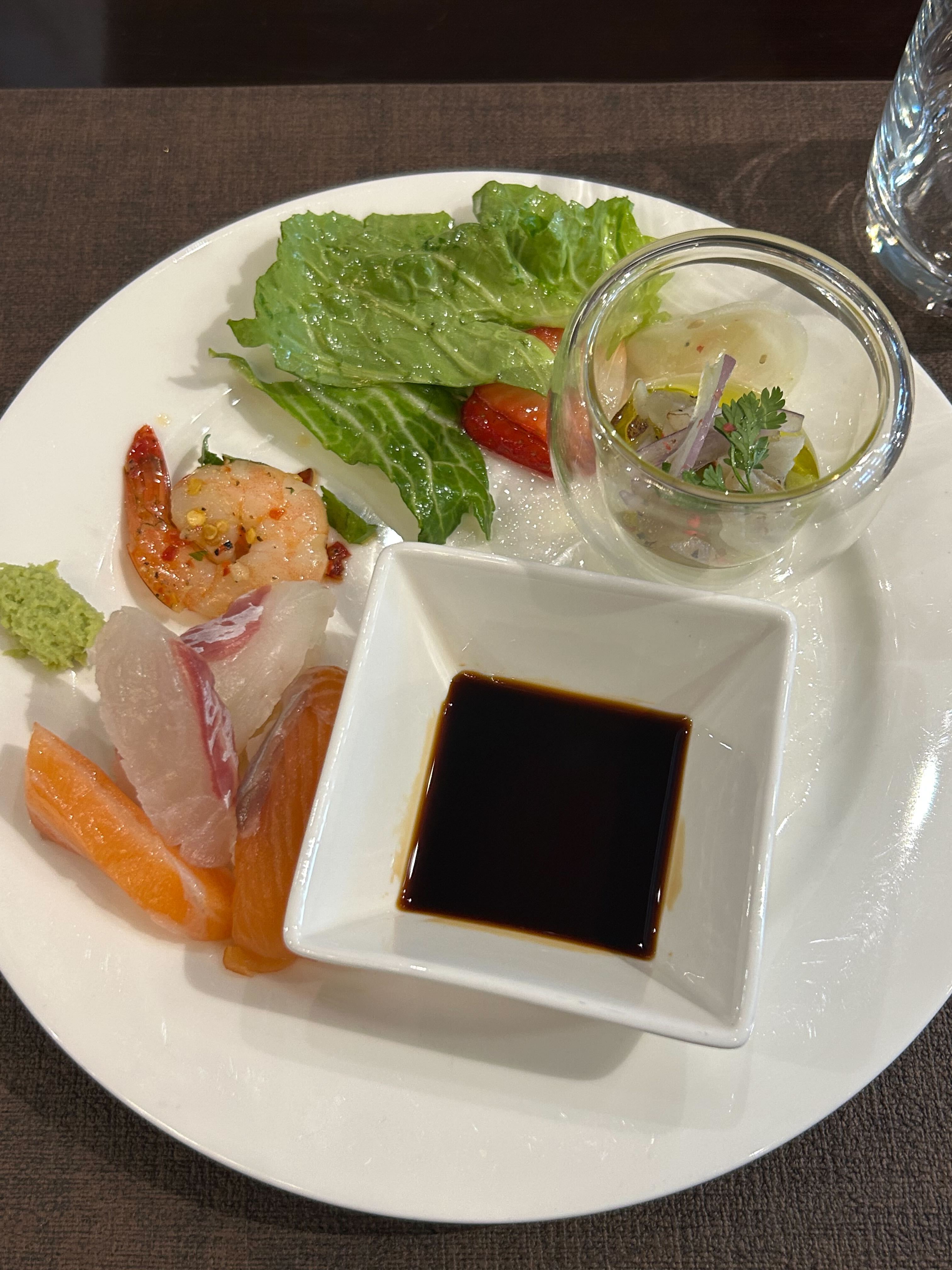 워낙 여러분들께 사진을 받다보니 누구의 접시인지는 모르겠으나, 혼 좀 나야겠어요. 간장종지를 디쉬 플레이트에 담을 정도로 ① 소식을 하시거나, ② 여러 번 받아올 각오로 체력이 짱짱하시거나, 둘 중 하나인 것 같은데. 간장을 저만큼 받으셨으면 제가 기대하는 디쉬 플레이팅은 저기 남은 부분이 다 회나 스시여야하거든요? 어허, 자네 뷔페를 즐길 준비가 안되었구만ㅋㅋ 정신 단디 차리세요! 여긴 8개월 만에 방문한 뷔페이고 회사 돈으로 배터지게 먹어야하는 절호의 기회라구요!!! 아 근데 저기 동그란 유리잔에 담긴 세비체? 맛있습니당.