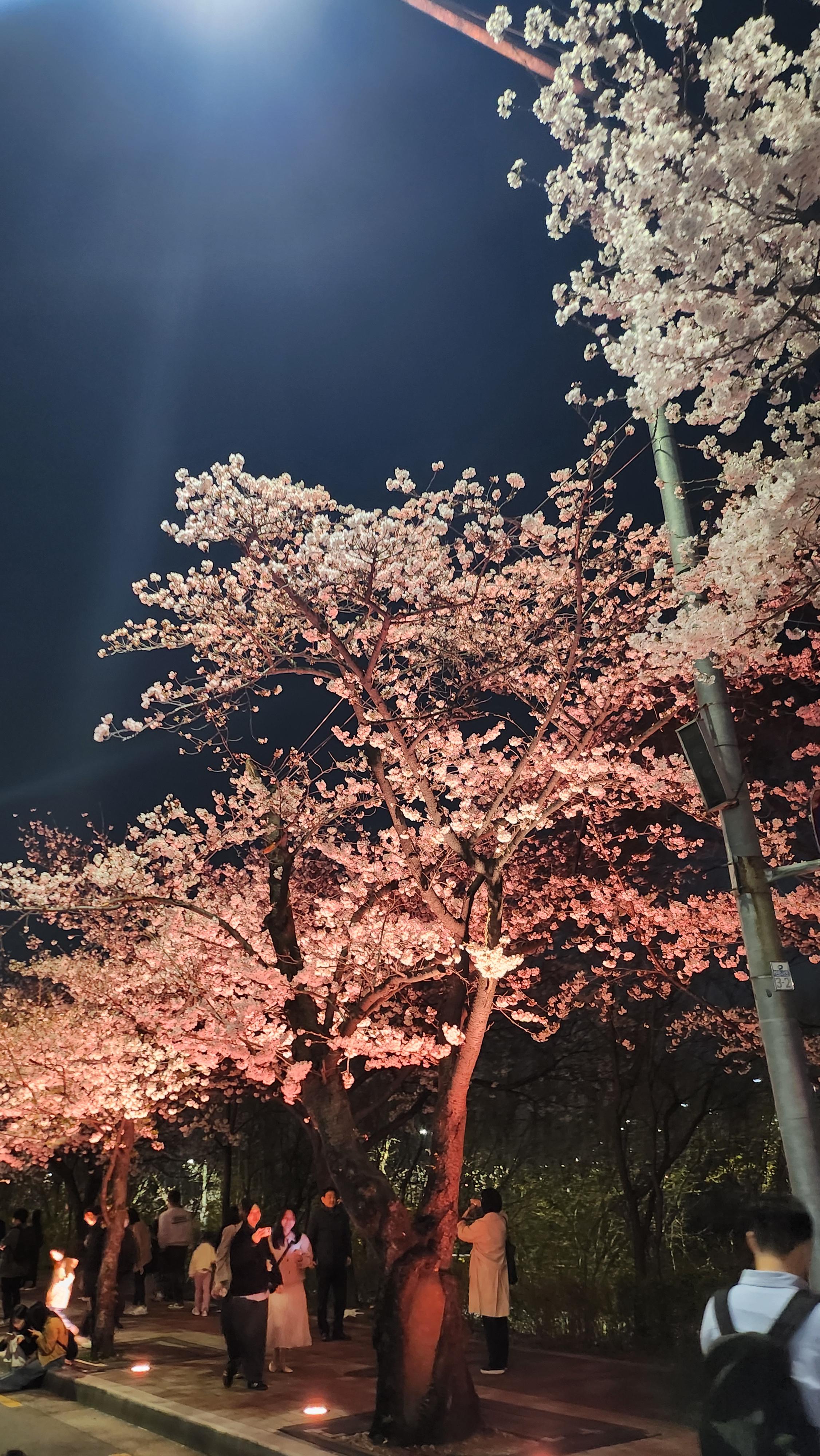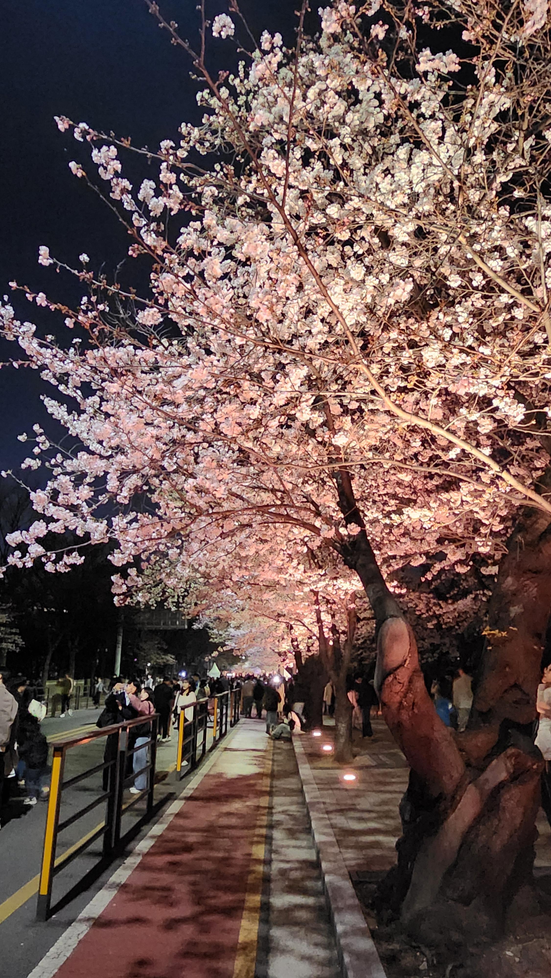 이건 제가 8일(화)에 저녁 폭식을 하게 되어 산책에 나선 날 찍은 사진들인데요. 낮보다 확연히 줄어든 인파로 확실히 걸을 맛이 나고, 또 벚꽃을 향해 은은한 조명을 켜둬서 사진도 예쁘게 찍힙니다(만 핸드폰을 바꿔야겠다). 무엇보다 올해는 벚꽃을 올려다보며 앉아있을 수 있는 공간이 많더라구요. 수많은 캠핑의자가 준비되어 있어 퇴근 후 고즈넉한 산책이 땡기는 분들은 한번쯤 고려해보셔도 좋을 것 같습니다. 단, 고민은 너무 오래 하지 마세요. 벚꽃은 금방 져버려 금새 사라지니까요.