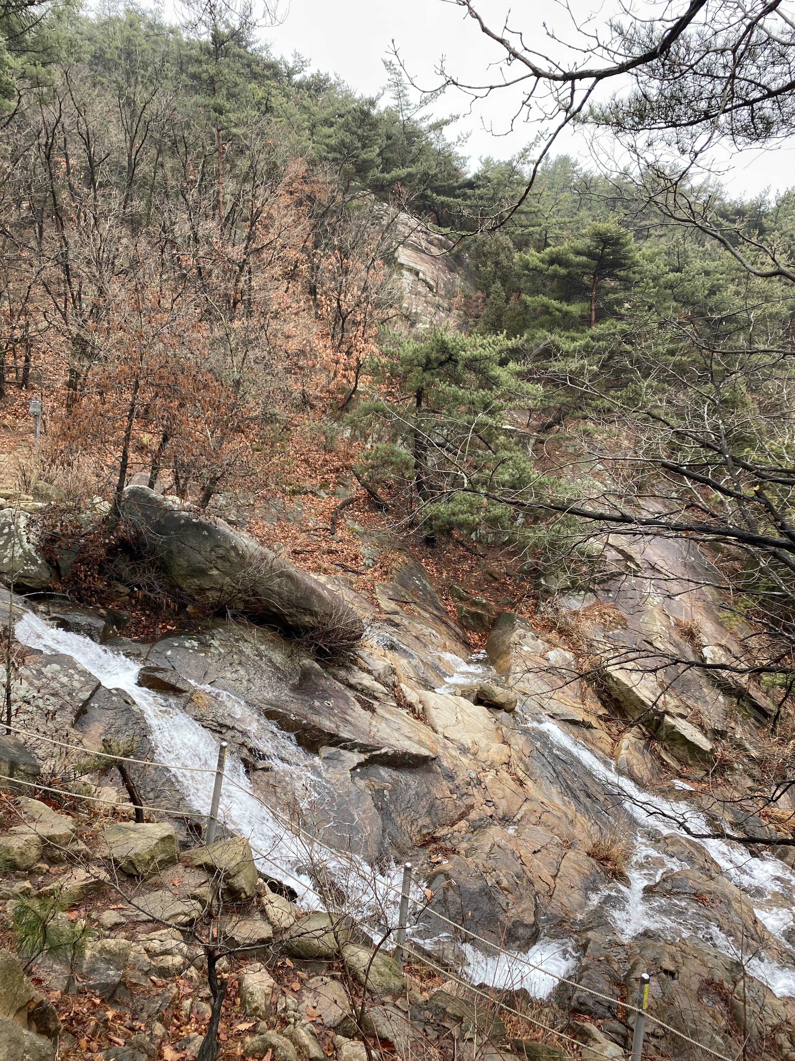 부슬부슬 비가 내리고 있었는데 그래서 그런지 운동하기에 딱 적합했어요. 산악회 회장님을 제외하곤 등산이 처음인 직원들이 대부분이라 비에 젖은 바위에 미끄러지지 않게끔 주의사항도 듣고, 장비 점검 후 사부작사부작 등산을 시작해 봅니다. 생각해보니 이 때 야외활동 중에도 마스크가 필수인 시점이라 KF94 마스크를 끼고 점점 격해지는 호흡을 컨트롤하는 게 너무나 힘들었습니다. 살려줘 내 체력...