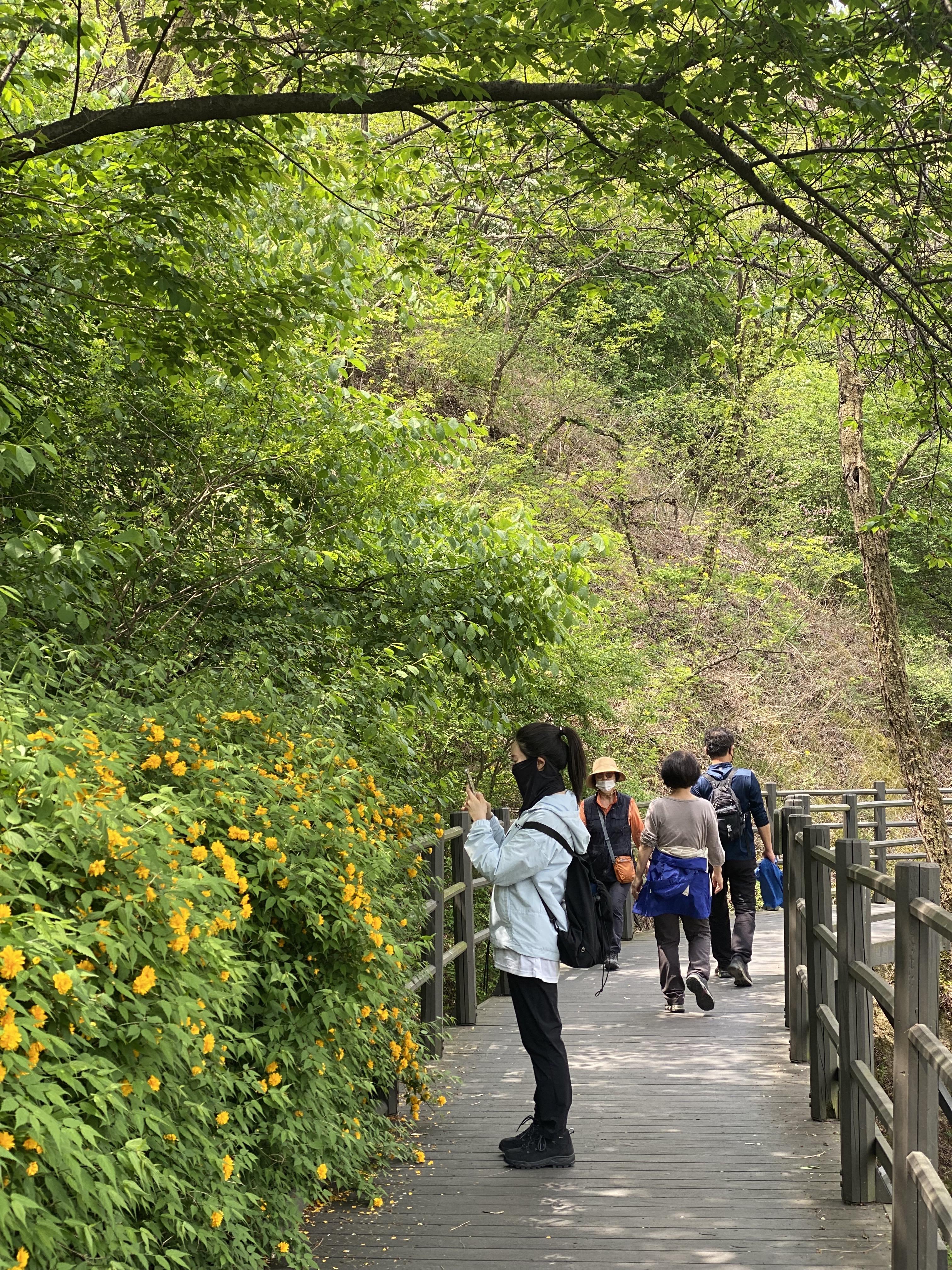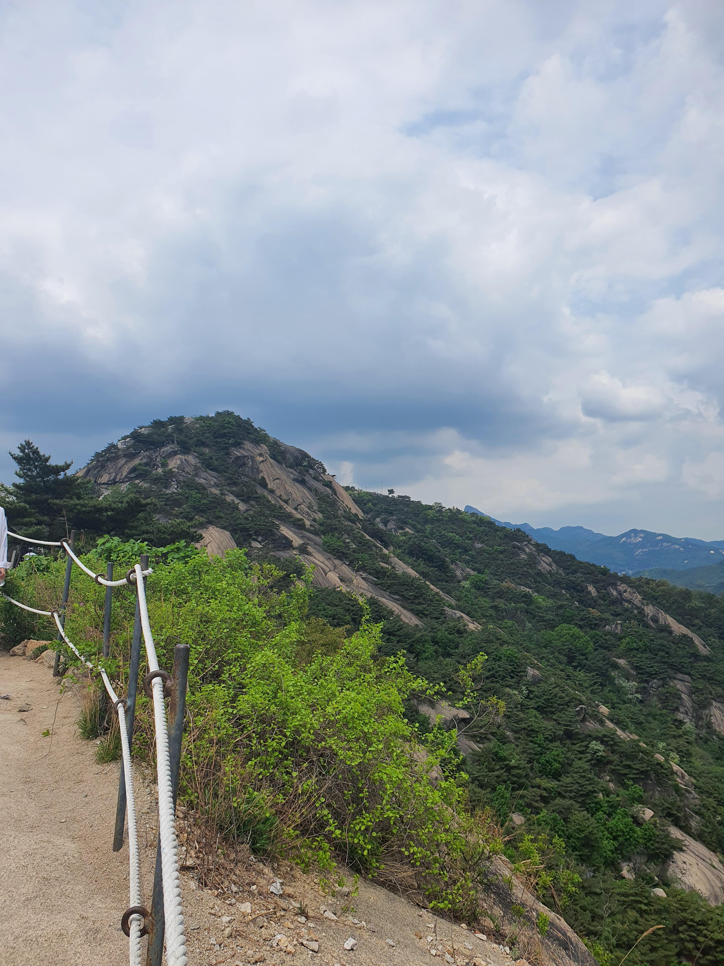 드디어 무악재 하늘다리를 건넜습니다. 제가 고소공포증이 아주 심합니다만 건널만했습니다. 다리 양쪽으로 화단이 조성돼있는데 그걸 보면서 걸으니 높이는 실감나지 않았어요. 다 건너고 나서야 사진 찍으며 높이를 확인하곤 유난 떨지 않았던 나 칭찬해~ 를 마음 속으로 외치며 묵묵히 다음 정상을 향해 발길을 옮깁니다.