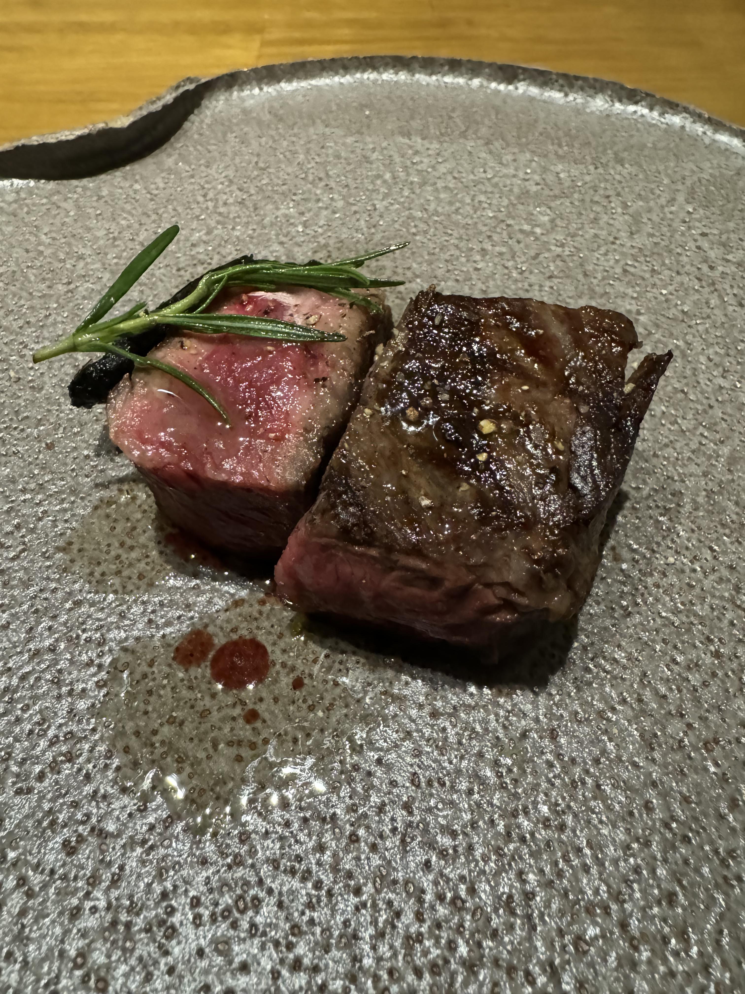 확대컷도 있지롱! 저 조그만한 스테이크로 배가 부르냐 하시겠지만 원래 이딸리안 레스토랑 같은데서는 미식을 즐기는 거잖아요. 그리고, 앞서 봤던 질 좋은 나이프로 잘라 먹으면 그닥 적은 양도 아니었다고 하네요. 아무래도 고기 본연의 질감과 맛을 극대화해서 가장 최적화된 맛을 구현하는 곳이다보니 믿고 먹으면 그대로 존맛탱구리겠죠.