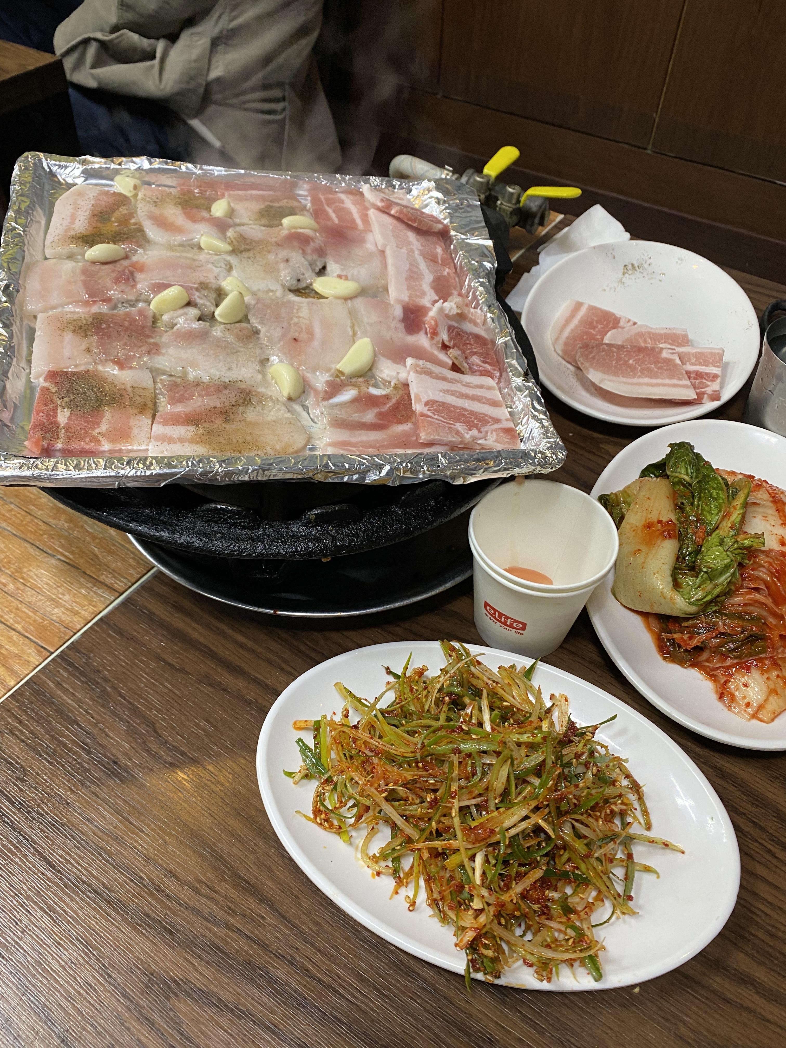 냉삼 시키고, 맥주 한 병 시키고. 후추춧 뿌린 냉삼이 빠르게 익는 동안 맥주 한 잔 캬~~~