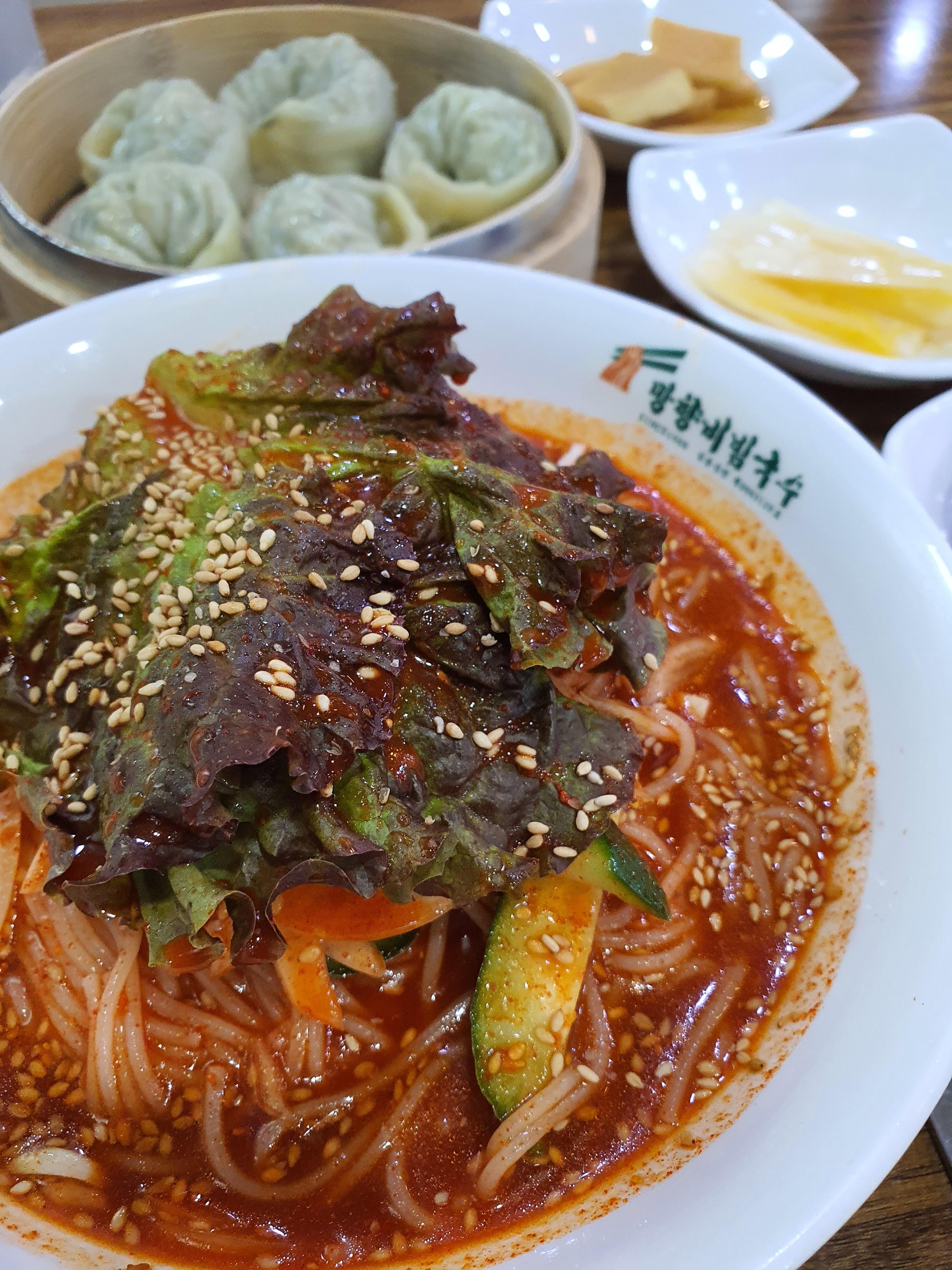이게 다 똑같은 사진을 돌려쓰는 것 같아 보이지만 절대로 단언코 다 다른 날입니다. 여러분은 평양냉면과 함흥냉면 중에 어떤 걸 더 좋아하시나요? 다들 평양냉면이라고 하겠지만 저는 곧 죽어도 함흥냉면! 빨갛게 비벼 먹는 비빔국수를 좋아합니다. 망향비빔국수 본점은 영화 <강철비>에도 나오죠. 수갑을 풀어주자 정우성이 허겁지겁 먹는 장면을 보고나면 한 시간 뒤엔 망향비빔국수 여의도점 식탁에 앉아있는 저를 발견.
